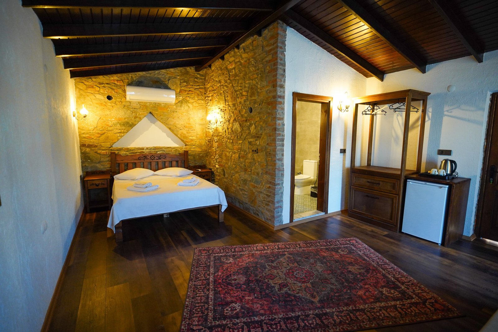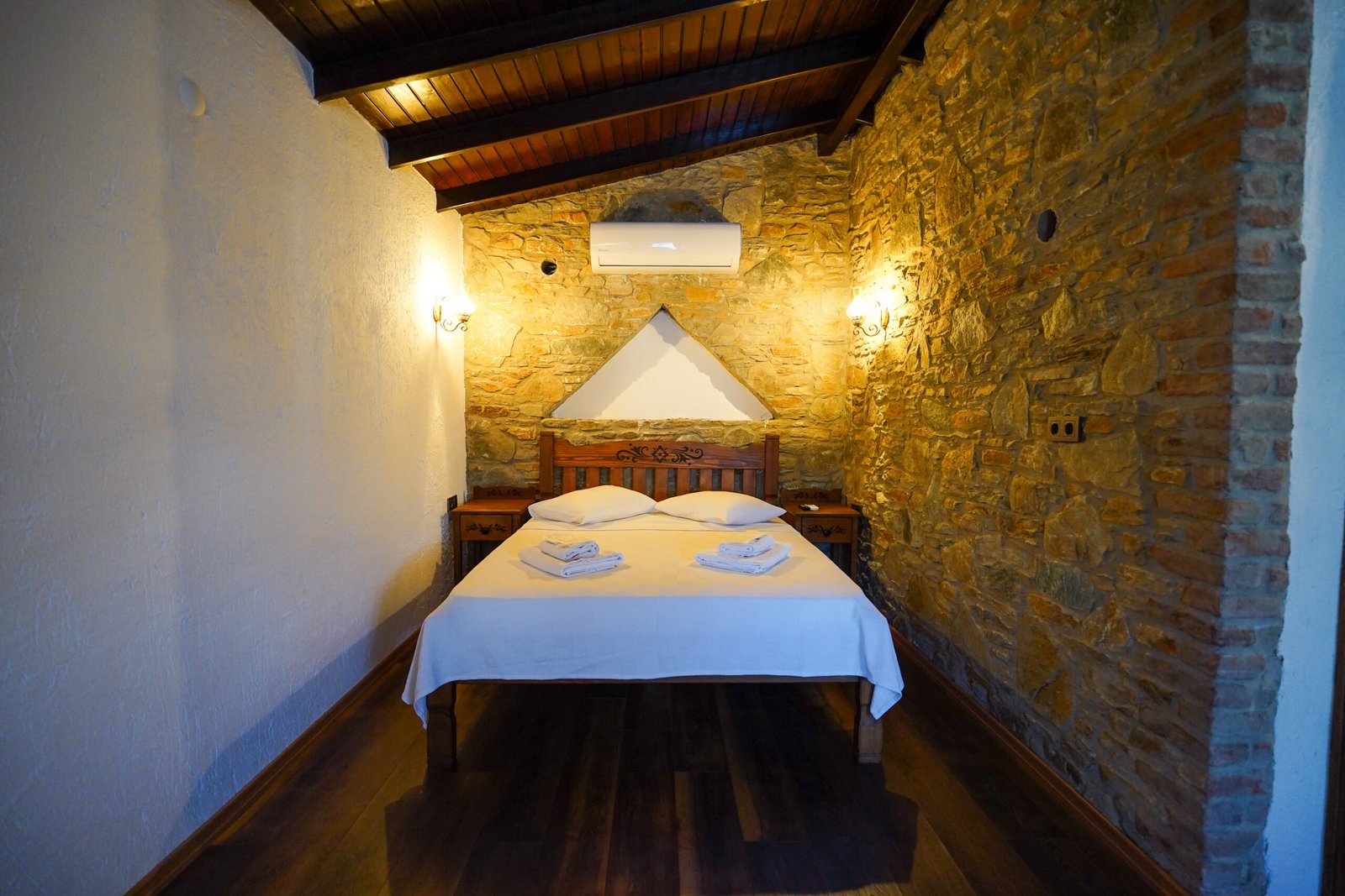 Taş duvarların sıcaklığı, zarif aydınlatmalar ve romantik dokunuşlarla birleşerek size ait, dingin bir dünya yaratır.